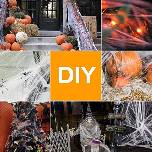 【Decorazione ovunque tu voglia】Allungare la ragnatela su specchi, lampadari, tavoli, finestre, caminetto, comò, ingresso anteriore, veranda, mobili, cespugli, arbusti, siepi, alberi, fioriere, porta d'ingresso, giardino, cortile e parete per creare un'atmosfera inquietante e inquietante.