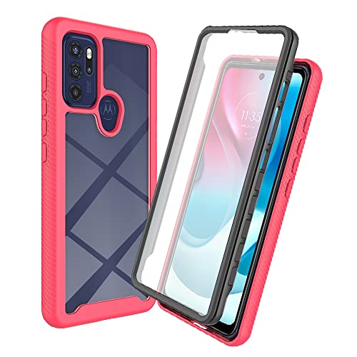 XINNI Cover per Motorola Moto G60S, Protezione Schermo Integrata 360 Gradi Antiurto Custodia, Rugged Doppia Faccia Bumper Trasparente Full Guscio Fronte Retro Case, Rosa