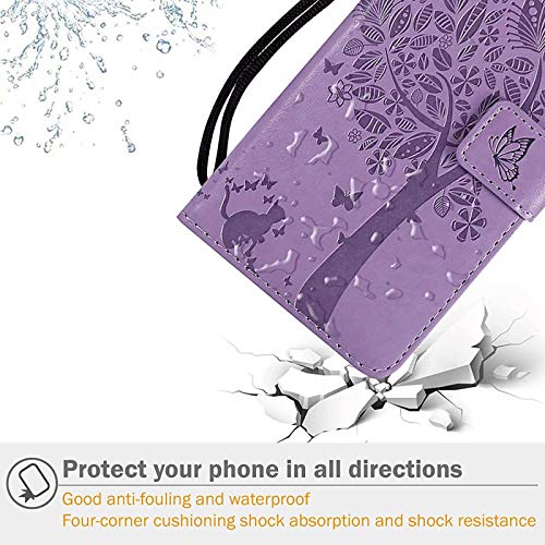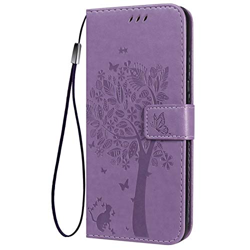 XINNI Cover Protettiva per Motorola Moto G30/G20/G10/G10 Power Case, PU/TPU/Fiore in Rilievo 3D Flip Magnetica Cellulare Custodia Libro Antiurto Pelle Portafoglio, Viola Chiaro