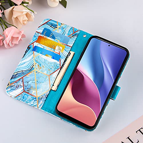 XINNI Cover Protettiva per Xiaomi Poco F3/Xiaomi Mi 11i Case, PU/TPU/Modello in Marmo Flip Magnetica Cellulare Custodia Libro Antiurto Pelle Portafoglio, Blu