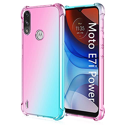 XINNI Cover per Telefono Motorola Moto E7 Power/Moto E7i Power, Ultra Thin Soft TPU Trasparente/Leggera Sfumatura AntiGraffio Antiurto Case Protezione a 360 Gradi Cellulare Custodia, Rosa/Verde
