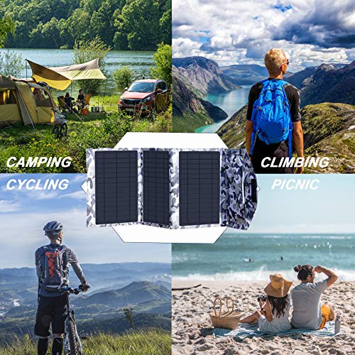 XINPUGUANG Caricatore Solare Portatile 21w 5v 3A Pannello Solare Pieghevole con Uscita USB per Telefono Cellulare, Tablet, Fotocamera, Ventilatore, Luce, Ricarica (Mimetica)