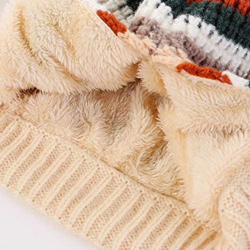 Xinqiao Cappello invernale peruviano Beanie Knit Fleece foderato Earflaps Pom Pom Cap, Beige, Taglia unica