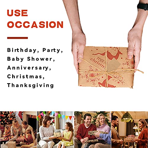 XINRANFF Carta da Regalo Natalizia, Carta da Regalo Natalizia Set Kraft con Biglietto d'auguri, Corda da Imballaggio, Carta da Regalo per Compleanni, Feste, Anniversari, Natalizia, Thanksgiving