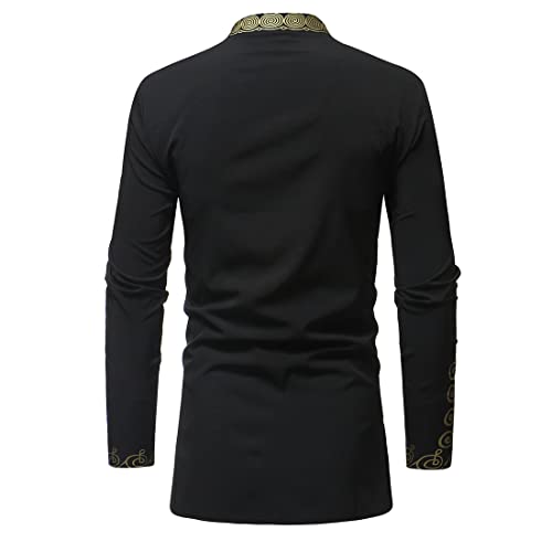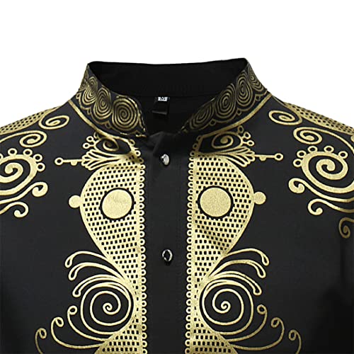 Xinvivion Camicie da Uomo in Stile Africano - Riche Bazin Dashiki Shirt Abiti Etnici Nigeria Manica Lunga Bronzing Stand Collar T-Shirt