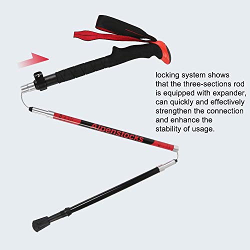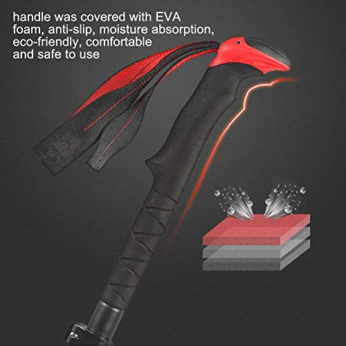 Xinwoer Bastone da Trekking Ecologico e Confortevole, Bastoncini da Trekking Pieghevoli a 5 sezioni Bastone da Passeggio in Fibra di Carbonio Anti-Shock(Uomo Rosso)