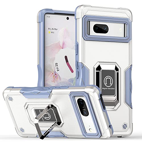 XINYEXIN Armor Cover per Google Pixel 7, Custodia Antiurto Grado Militare [Design Antiscivolo] con Anello Supporto Hard PC y TPU Bumper Silicone Custodie - Bianco