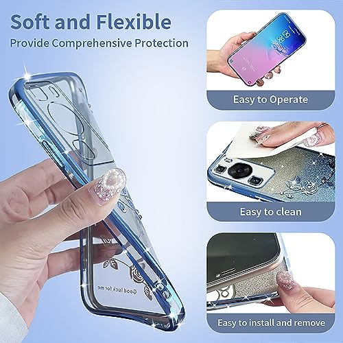 XINYEXIN Cover Glitter per Huawei P60 Pro, Custodia Bling Brilla Ultrasottile Trasparente Antiurto, Carino Scintillante con Donne e Ragazze - Blu