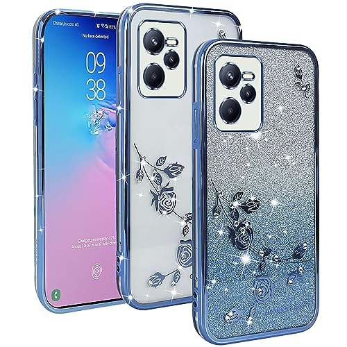 XINYEXIN Cover Glitter per Realme C35, Custodia Bling Brilla Ultrasottile Trasparente Antiurto, Carino Scintillante con Donne e Ragazze - Blu