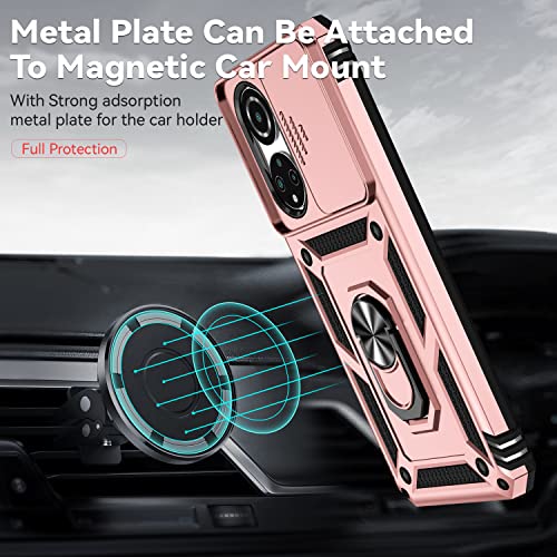 XINYEXIN Cover per Honor X7, Custodia con Protezione Fotocamera [360° Magnetica Anello Supporto] Hard PC y TPU Silicone Antiurto Custodie - Oro rosa