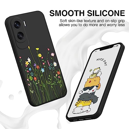 XINYEXIN Cover per Honor 90 Lite 5G, Custodia in Silicone Morbido Antiurto Ultrasottile con Motivo Carino, Design a Bordo Dritto - Flowers, Black