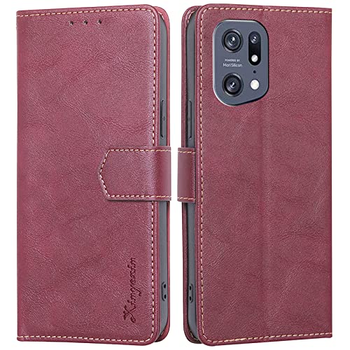 XINYEXIN Cover per Oppo Find X5 Pro, Custodia Pelle Portafoglio [Blocco RFID][Slot per Schede][Cavalletto] Antiurto Folio Cover a Libro Magnetica Flip Case - Red