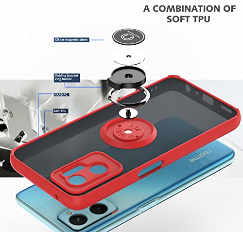 XINYEXIN Cover per Oppo A76 / A36 / Realme 9i, Traslucida Custodia Antiurto AntiGraffio con Supporto Anello a 360°, PC + TPU Bumper Case - Rosso