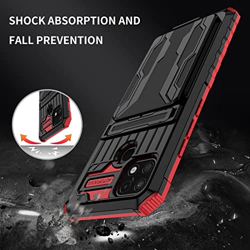 XINYEXIN Cover per Realme C21 / Realme C21Y / Realme C25Y Custodia Telefono con Portacarte Nascosto, Duro PC/Morbido TPU Antiurto Case Doppia Protezione con Funzione Staffa - Rosso