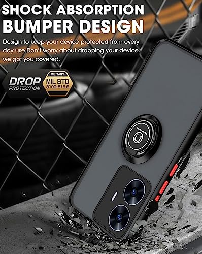 XINYEXIN Cover per Realme C55, Traslucida Custodia Antiurto Antigraffio con Supporto Anello a 360°, PC + TPU Bumper Case - Nero