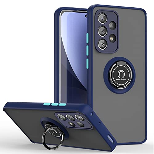 XINYEXIN Cover per Samsung Galaxy A52 / A52 5G / A52S 5G, Traslucida Custodia Antiurto AntiGraffio con Supporto Anello a 360°, PC + TPU Bumper Case - Blu Reale
