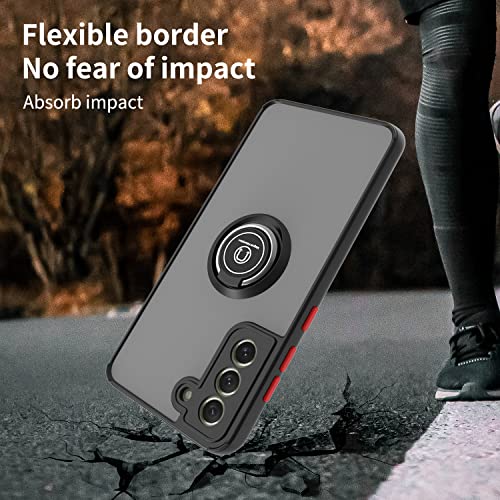 XINYEXIN Cover per Samsung Galaxy S21 Fe 5G, Traslucida Custodia Antiurto AntiGraffio con Supporto Anello a 360°, PC + TPU Bumper Case - Nero Rosso