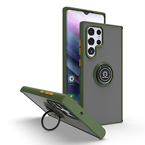 XINYEXIN Cover per Samsung Galaxy S22 Ultra 5G, Traslucida Custodia Antiurto AntiGraffio con Supporto Anello a 360°, PC + TPU Bumper Case - Army Green