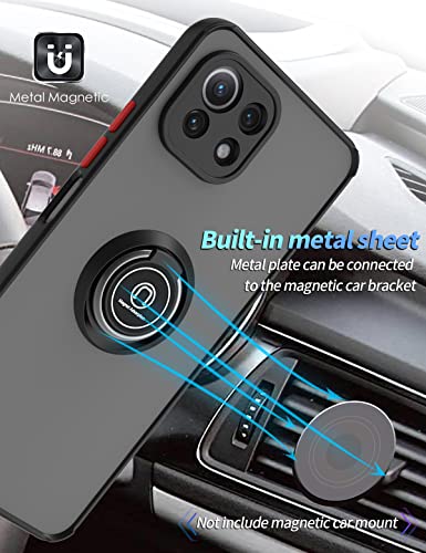 XINYEXIN Cover per Xiaomi Mi 11 Lite 4G / 5G / 5G NE, Traslucida Custodia Antiurto Antigraffio con Supporto Anello a 360°, PC + TPU Bumper Case - Nero