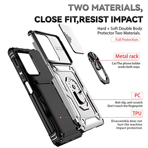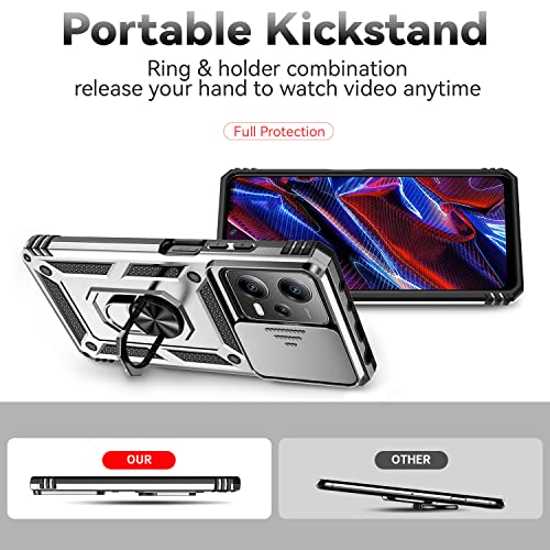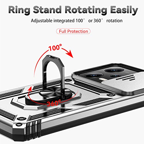 XINYEXIN Cover per Xiaomi Redmi Note 12 Pro 5G / Poco X5 Pro 5G, Custodia con Protezione Fotocamera [360° Magnetica Anello Supporto] Hard PC y TPU Silicone Antiurto Custodie - D'argento