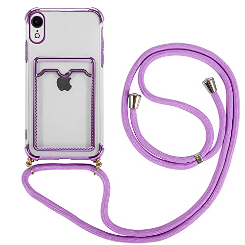 Xinyunew Collana Porta Cellulare Compatibile con Custodia per iPhone XR-Custodia da Collo per Smartphone,Cover con Cordoncino da Indossare Slot per Schede -Porpora