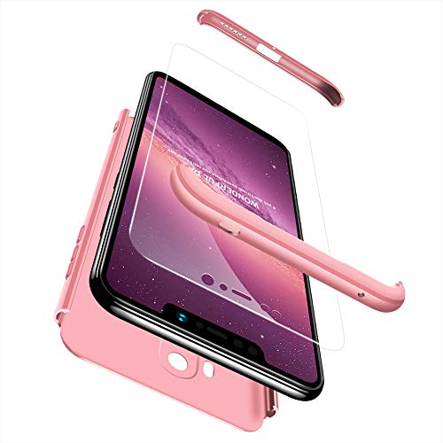 Xinyunew Cover Compatibile con Huawei Honor View V10/V10,Protezione del Corpo a 360 Gradi + Pellicola Protettiva in Vetro temperato,[Anti-Impronta][AntiGraffio] Guscio Protettivo 3 in 1- Rose Oro