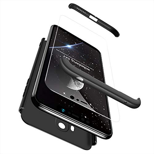 Xinyunew Cover Compatibile con Huawei Honor View V10/V10,Protezione del Corpo a 360 Gradi + Pellicola Protettiva in Vetro temperato,[Anti-Impronta][AntiGraffio] Guscio Protettivo 3 in 1- Nero