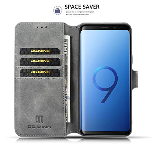 Xinyunew Cover Galaxy S9,360 Gradi Custodia + Pellicola Protettiva Vetro Temperato Wallet Case Standing Flip Caso Pelle Premium Portafoglio Silicone Case Custodia per Galaxy S9 Grigio