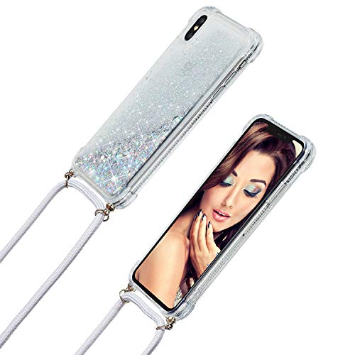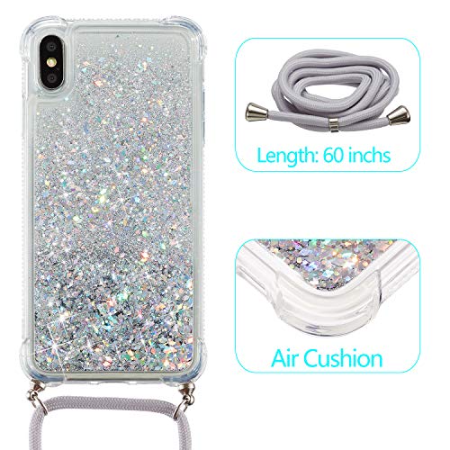 Xinyunew Custodia con Cordino per iPhone X/iPhone XS Custodia Trasparente Liquid Quicksand,[Anti Ingiallimento, Anti Graffio] per iPhone X/iPhone XS- Argento