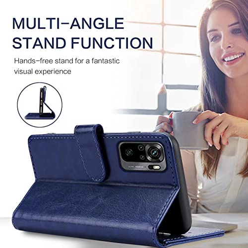 Xinyunew Custodia per Xiaomi Redmi Note 10/Note 10S,Cover Xiaomi Redmi Note 10/Note 10S Libro,Custodia Xiaomi Redmi Note 10/Note 10S Pelle,Flip Cover per Phone Portafoglio,Blu
