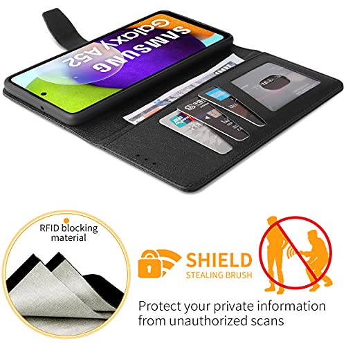 XINZATU Custodia per Samsung A52 con protezione RFID, Samsung Galaxy A52S 5G, in pelle, con scomparto per carte di credito, in pelle, colore: nero