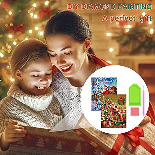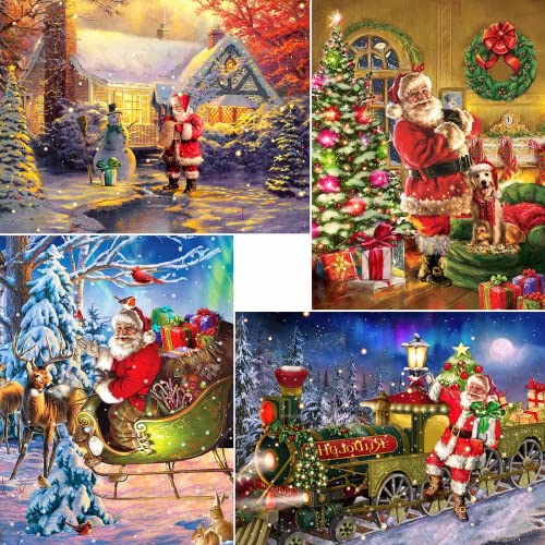 Xinzistar 4 Pezzi Pittura Diamante Natale Kit, 5D Pittura Diamante per Adulti Bambini Diamond Painting Kit Completo Trapano Diamante Arte Pittura per Muro di Casa Decorazion Natalizia