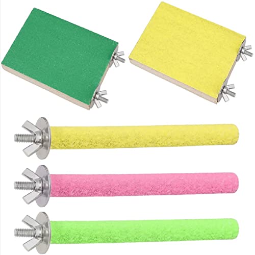 Xinzistar 5 Pezzi Posatoio per Pappagalli, Giochi per Pappagalli Trespolo per Pappagalli Accessori, Uccello Giocattolo di Masticare Limaunghie Piattaforma Pulizia della Zampa Giocattoli di Pappagallo