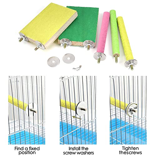 Design Accattivante - Colori brillanti, rosa, gialli e verdi attireranno l'attenzione dei pappagalli per stare in piedi e masticare. E può essere facilmente installato nelle gabbie.
