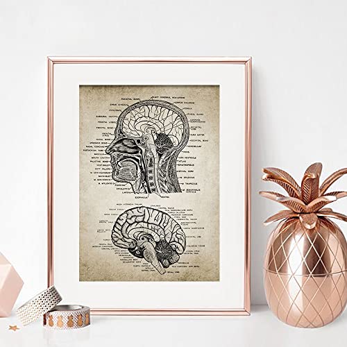 XIOFYA 1pc Testa Umana e Cervello Anatomia di Anatomia del Brevetto Poster Vintage Stampa neuroscienza Anatomia Umana Immagini murali dottori Ufficio Decorazioni for la casa