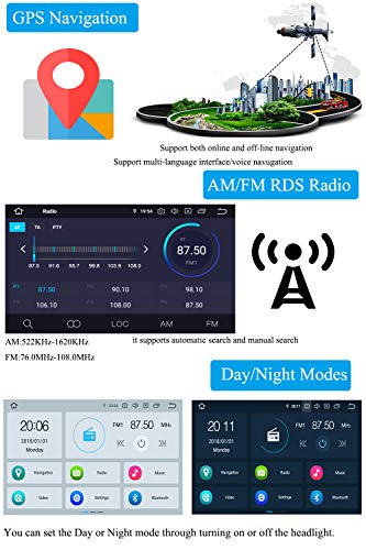 Supporto Control Del Volante/ FM AM radio/ OBD2/ Navigation/ DAB/ Immagine in Picture/ Subwoofer.Quando il faro è acceso, lo schermo di questa unità passerà automaticamente alla modalità notte.
