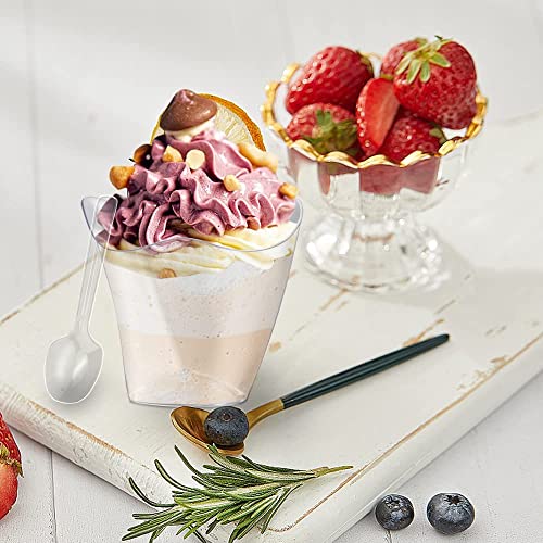 Leggero e trasparente: la tazza da dessert trasparente non si deforma facilmente. Può essere lavato rapidamente alla fine di una festa, asciugato per il riutilizzo e impilato per una facile conservazione e risparmio di spazio. Il design trasparente del prodotto può stimolare le papille gustative degli amici che partecipano alle feste