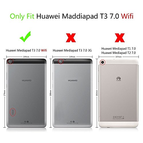 Specificamente progettata per tablet Huawei MediaPad T3 WiFi da 7 pollici del 2017 (0,9 x 17,9 x 10,4 cm). Non compatibile con altri tablet Huawei MediaPad T3 7 3G.