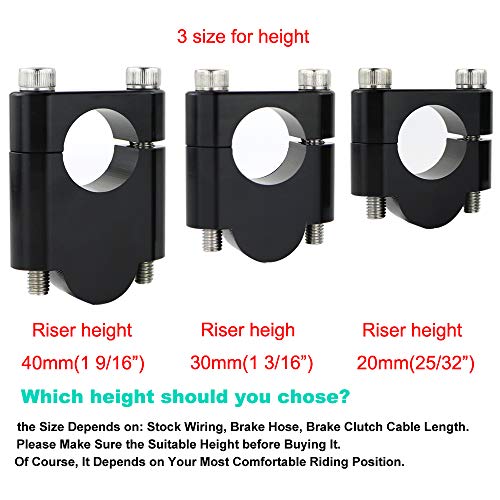3 altezze disponibili: 20 mm/30 mm/40 mm. La dimensione dipende da: cablaggio di riserva, tubo del freno, lunghezza del cavo della frizione del freno. Si prega di assicurarsi l'altezza adatta prima di acquistarlo. Naturalmente, dipende dalla posizione di guida più comoda.