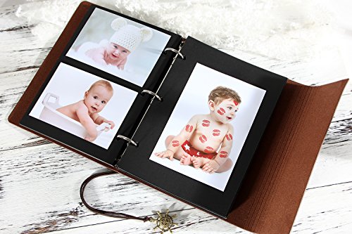 BELLO DISEGNO E MATERIALE DI QUALITA '- La copertina dell Scrapbook album è fatta di morbida e dura pelle sintetica. Gli anelli sono resistenti alla ruggine e possono essere facilmente aperti. I lati neri sono abbastanza spessi in modo che la colla non possa penetrare.