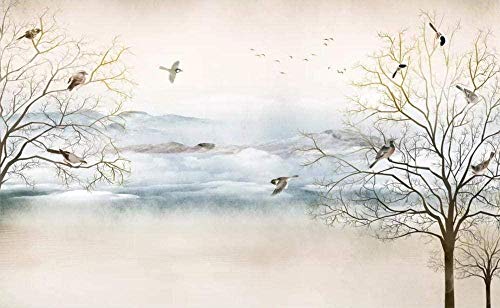 XiuTaiLtd - Carta da parati 3D da parete, paesaggio cinese, fiori uccellini, carta da parati effetto 3D, carta da parati in seta, decorazione da parete, 300 x 210 cm