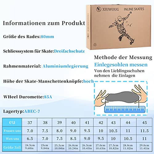 【Servizio clienti】I pattini in linea XIUWOUG offrono 6 mesi di garanzia, servizio di ritorno gratuito, il nostro obiettivo è risolvere tutti i problemi dei nostri clienti. Se c'è un problema, contattaci immediatamente. Risponderemo entro 12 ore. Speriamo sinceramente che il nostro articolo e il nostro servizio clienti possano offrirvi la migliore esperienza di acquisto.