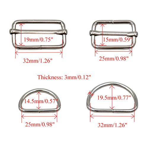 Xiuyer 100 pz Metallo Anelli a D & Tri-glide Diapositive Fibbie Webbing Sliders per Zaino della Cinghia dei Fissaggi Cintura Borse Craft Fai da Te Accessori 25mm 32mm Argento