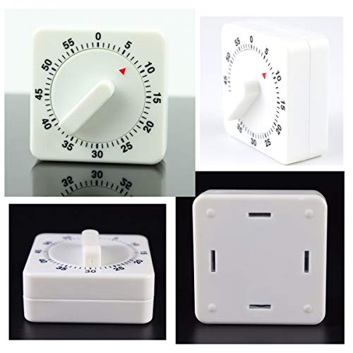 Xiuyer Timer da Cucina Meccanico, 2 Pezzi Timer da 60 Minuti con Allarme Forte Desktop Gioco Countdown Promemoria Quadrato Contaminuti per Cucinare Cottura(Plastica, Bianco)