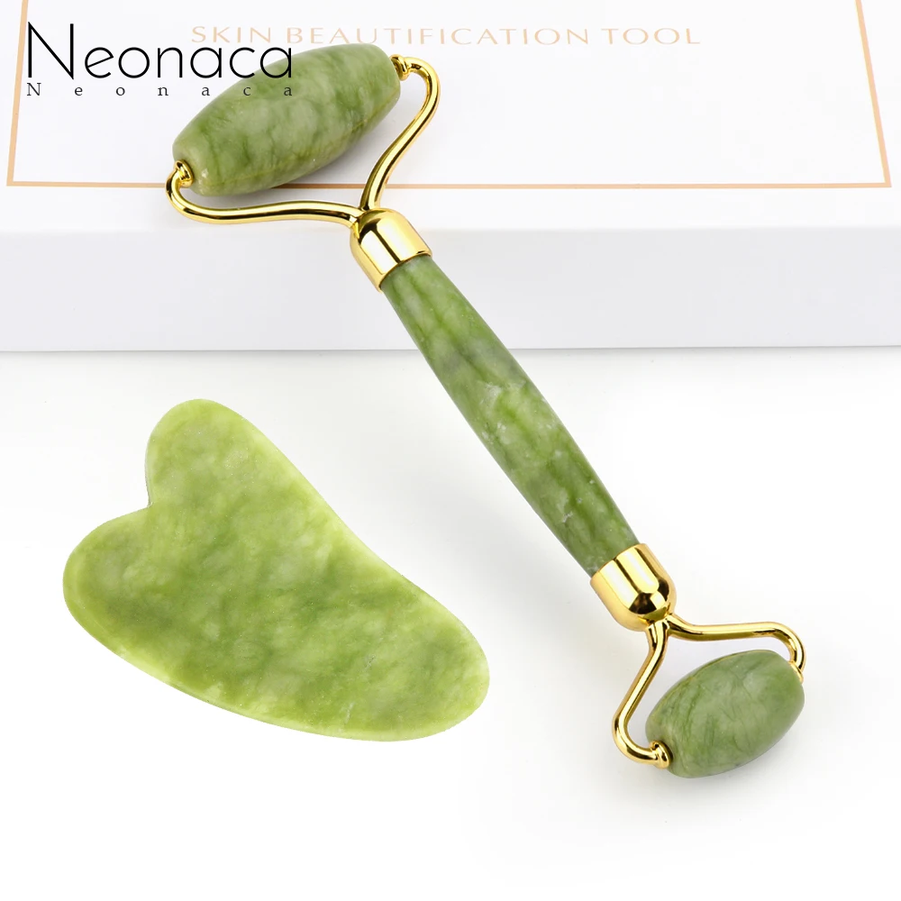 Xiuyu Facial Massage Roller Guasha Board Set Body Slim Neck Thin Skin Care Tools Double Heads Jade Roller Face-lift Skin Tool