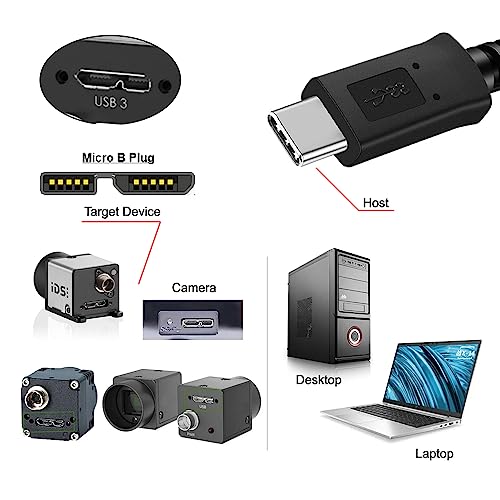 Xiwai Cavo dritto da 5 Gbps da Micro USB3.0 a USB-C Type-C per montaggio a vite per fotocamera industriale