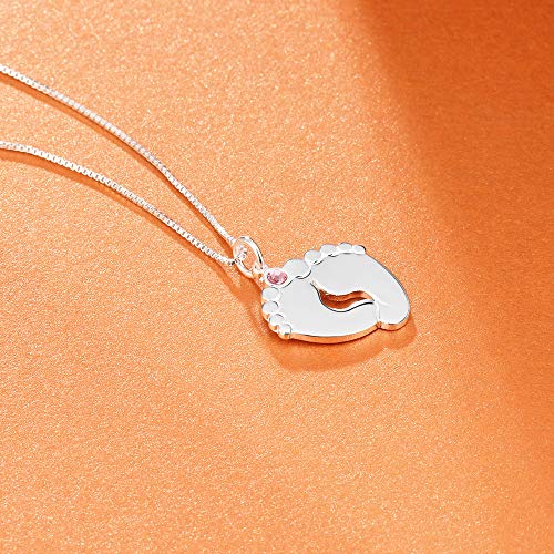 XiXi Collana con Nome Personalizzato Argento Baby Feet Collana Donna con Pietre Preziose Mamma Figlia Collana Incisione Regalo per Compleanno