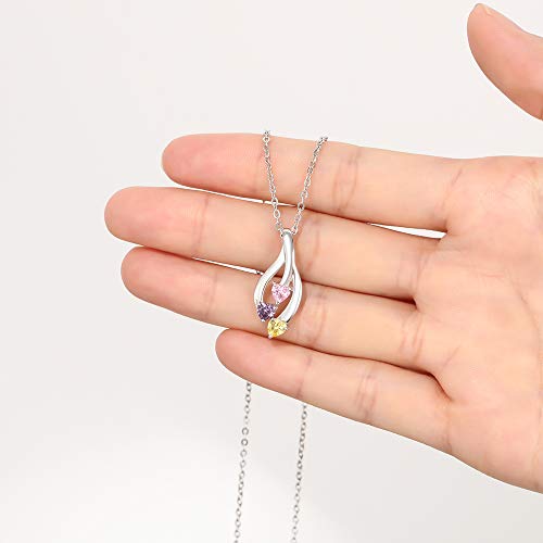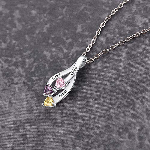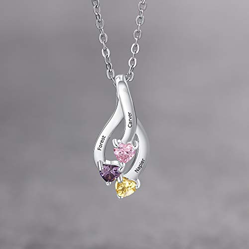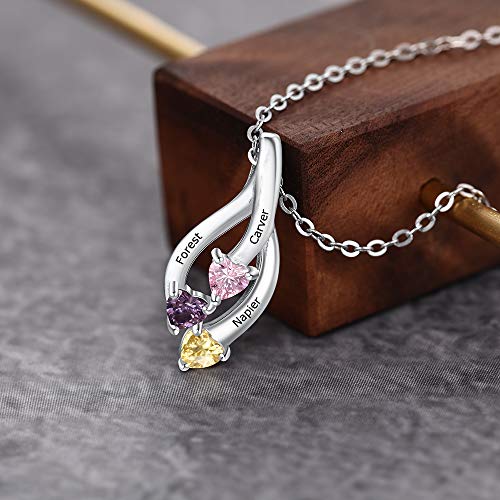 XiXi Collana Personalizzata Donna Collane in Argento con 3 Nomi e Pietra Incisione Collana per Figlia Madre Regalo per Ccompleanno Festa Della Mamma