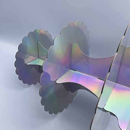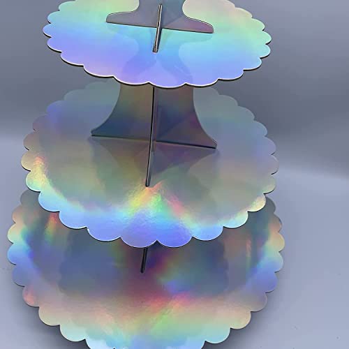 XIXIMENG Confezione da 4 alzate per cupcake in cartone a 3 ripiani con bordo in pizzo, supporto per cupcake in cartone (argento colorato)