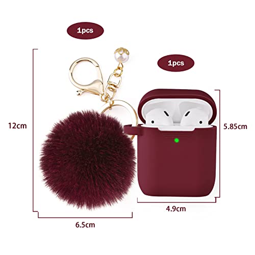 XIXKOLYU Case Compatible with Airpods, Case Compatible with Apple Airpods 2&1 Charging Case, Cute Silicone Protective Accessories Cases/Keychain/Pompom, Best Gift for Girls and Women